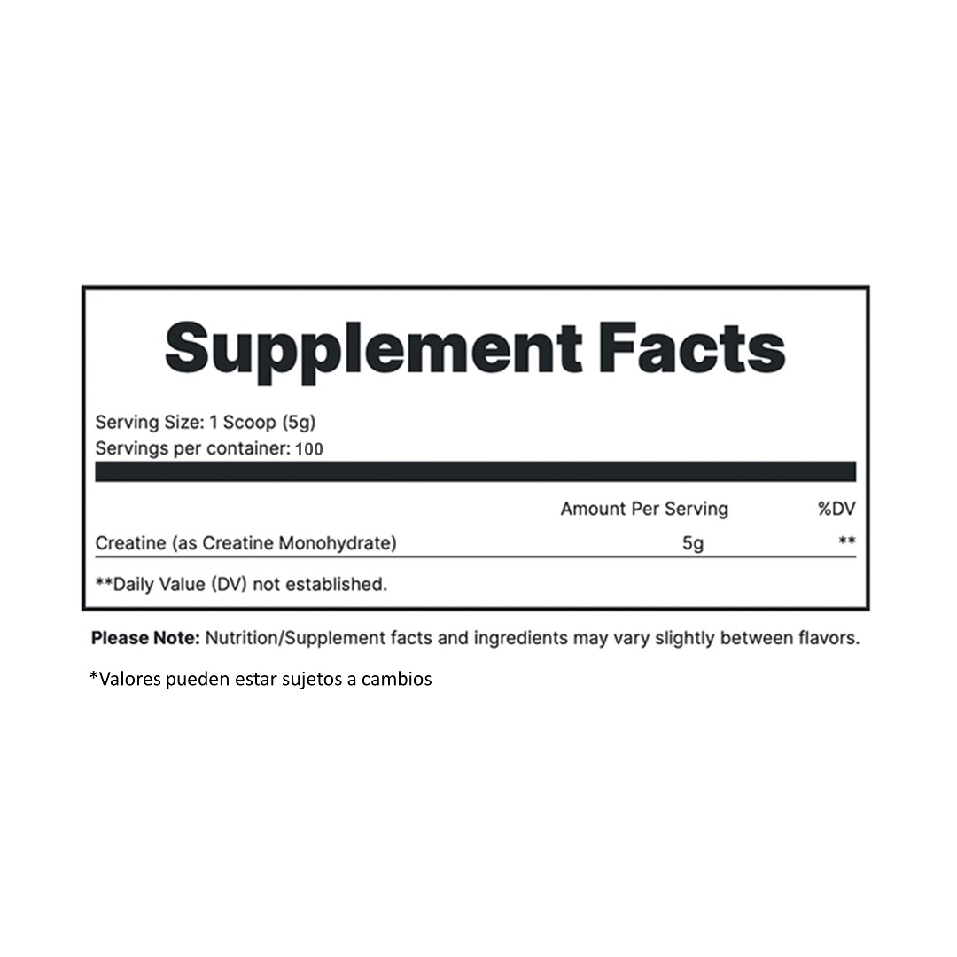 - Monohidrato de creatina 100% puro de alta calidad